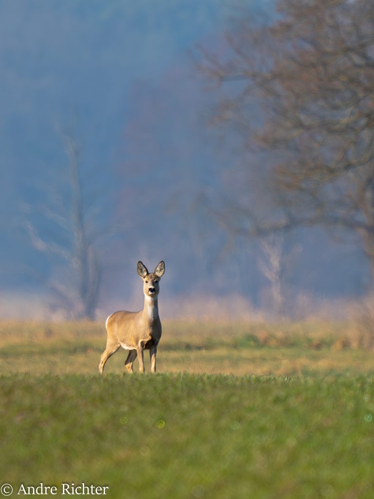 Nun konnte ich meine Einsätze besser planen. An einem Samstagmorgen versuchte ich mein Glück. Ich hatte die Route der Rehe gut eingeschätzt und war zuversichtlich. Doch kurz vor meinem optimalen Fotopunkt bogen die Tiere ab und nahmen einen anderen Weg. Eine weitere Woche verging mit geduldigen Beobachtungen, bis ich einen neuen Versuch startete.